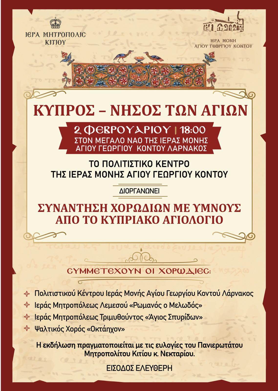 Ψαλτική Εκδήλωση «Κύπρος – Νήσος των Αγίων» στην Ιερά Μονή Αγίου Γεωργίου Κοντού